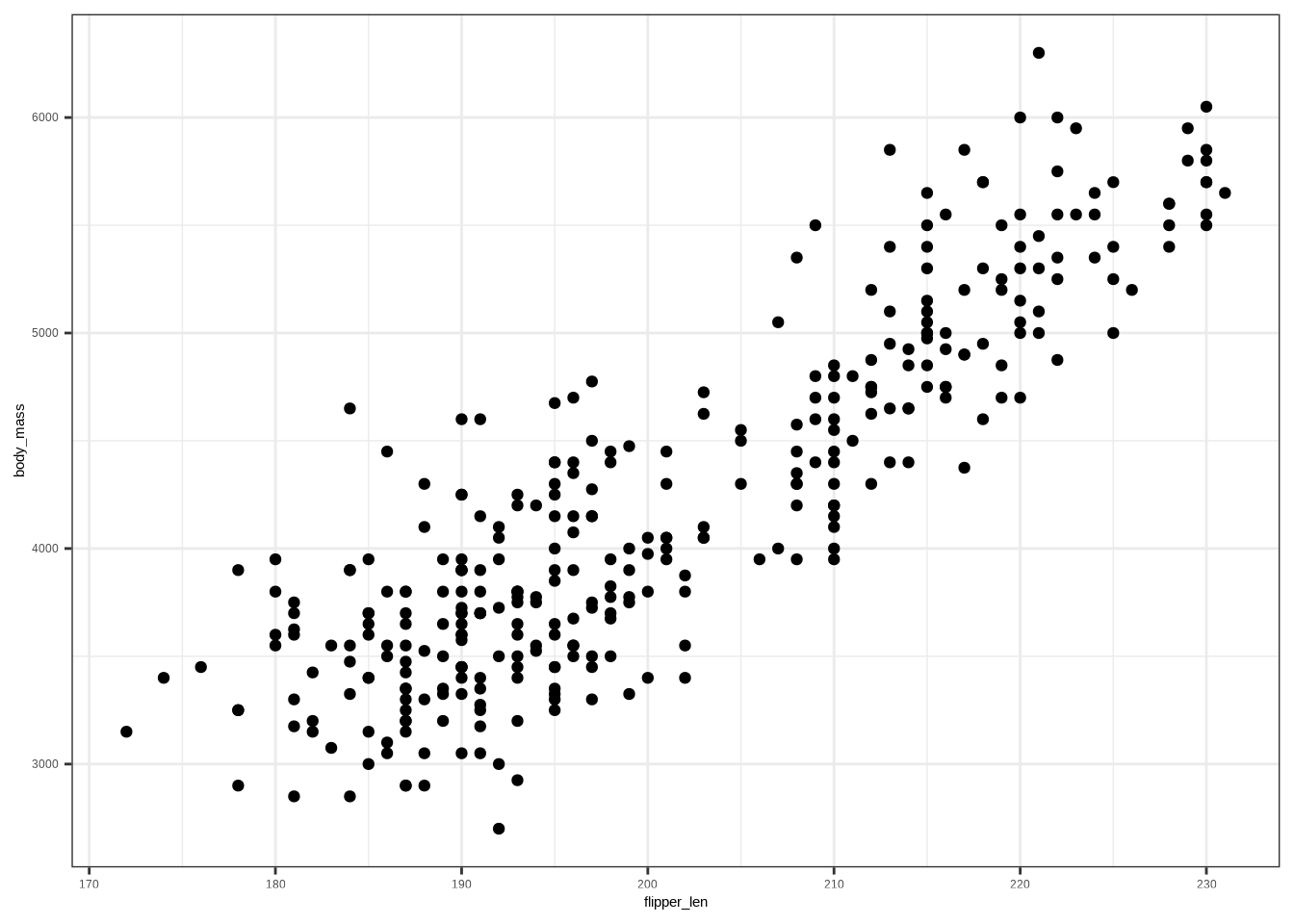 ggplot(penguins, aes(x = flipper_len, y = body_mass)) +