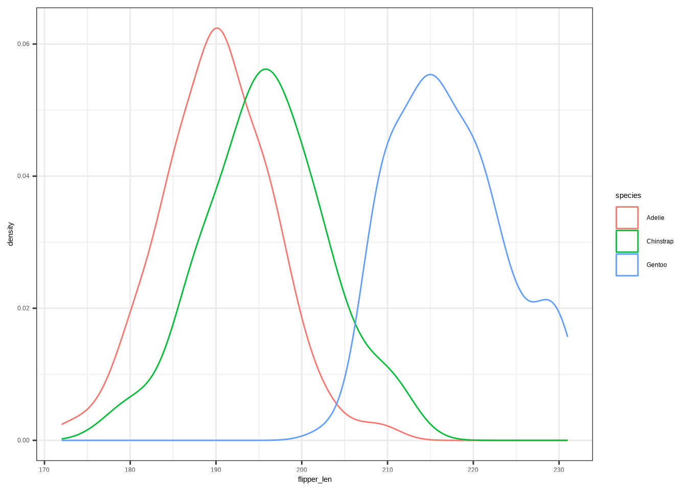 - `VAR2` → a single numerical variable (e.g., `flipper_len`).