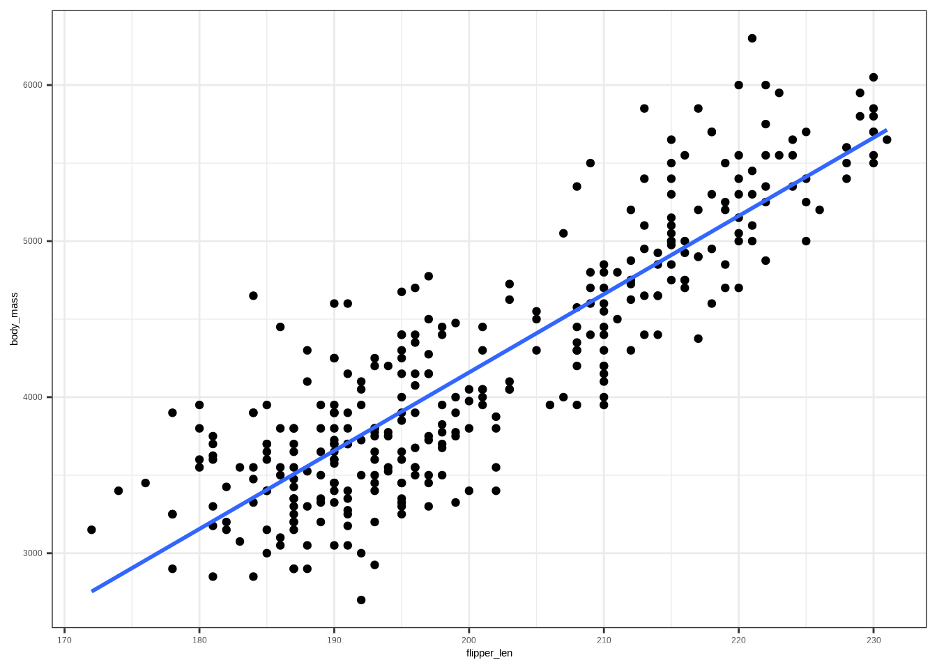 #> lm(formula = body_mass ~ flipper_len, data = penguins)